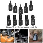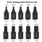De 10-delige boutenverwijderingsset biedt een uitgebreid assortiment maten, zodat je altijd het juiste gereedschap hebt voor elke verwijderingstaak.
