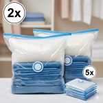 2 grote (60×80 cm) vacuüm opbergzakken + 5 kleine (21×22 cm) zakken gratis.