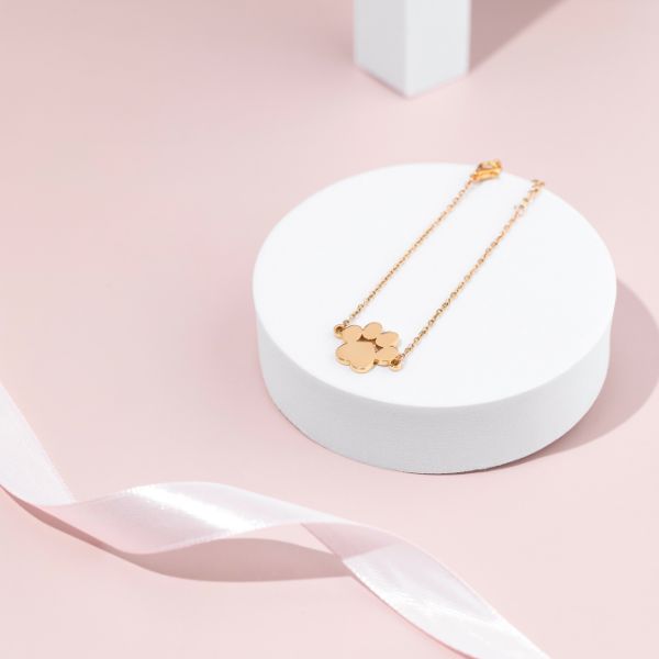Maak kennis met onze Pootafdruk Armband in een glanzende gouden kleur, een eerbetoon aan de onvoorwaardelijke liefde van onze harige vrienden. Deze charmante armband heeft een delicaat, maar ingewikkeld gedetailleerd pootbedeltje, dat de band tussen mens en dier viert. Het is met zorg en precisie gemaakt en voegt een vleugje warmte en genegenheid toe aan uw stijl. Of u hem nu draagt als herinnering aan uw geliefde huisdier of als een uiting van medeleven met dieren, onze Pootafdruk Armband in goudkleur straalt zowel elegantie als sentimentaliteit uit, waardoor het een perfect accessoire is voor elke dierenliefhebber.