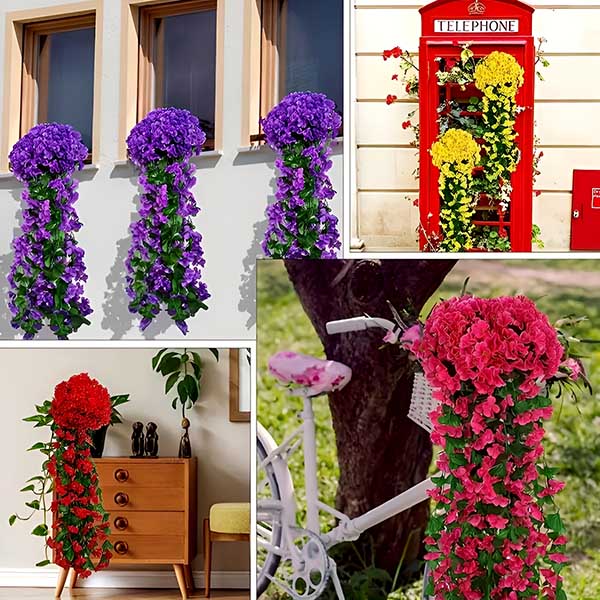 Breng een vleugje elegantie in elke ruimte met onze levensechte kunsthangbloemen. Deze hangende bloemen zijn gemaakt van prachtige zijdeachtige stof en hoogwaardig kunststof en voegen een natuurlijke charme toe aan je omgeving.