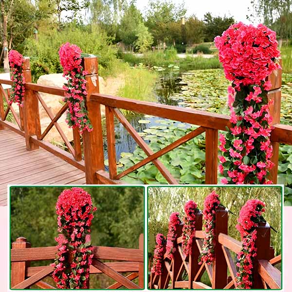 Voeg een vleugje kleur toe aan onverwachte plaatsen! Drapeer deze bloemen over je tuinhek, hang ze op je veranda of versier zelfs je fiets voor een speels tintje. Ze zijn perfect voor brievenbusversiering of om een tuinhuisje buiten op te fleuren.