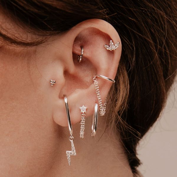 De unieke en originele Diamina oorbel is een lust voor het oog. Het voegt explosiviteit toe aan je look. Het is anders ontworpen dan andere oorbellen en opent nieuwe dimensies van dragen. De oorbel is verkrijgbaar als enkel stuk en is geschikt om te combineren met alle andere oorbellen.