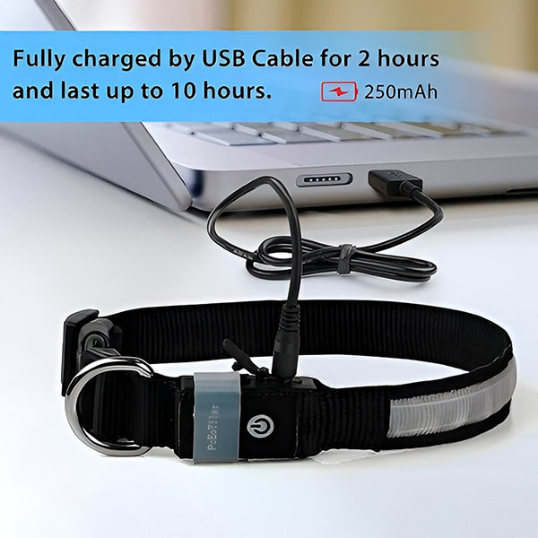 Verlicht de wandelingen van je huisdier in het donker. Deze verlichte hondenhalsband maakt elke wandeling veilig, door uw hond zichtbaar te maken tijdens nachtelijke wandelingen. De heldere LED-lampjes bieden 360 graden zichtbaarheid, zodat je huisdier veilig is voor passerende voertuigen.