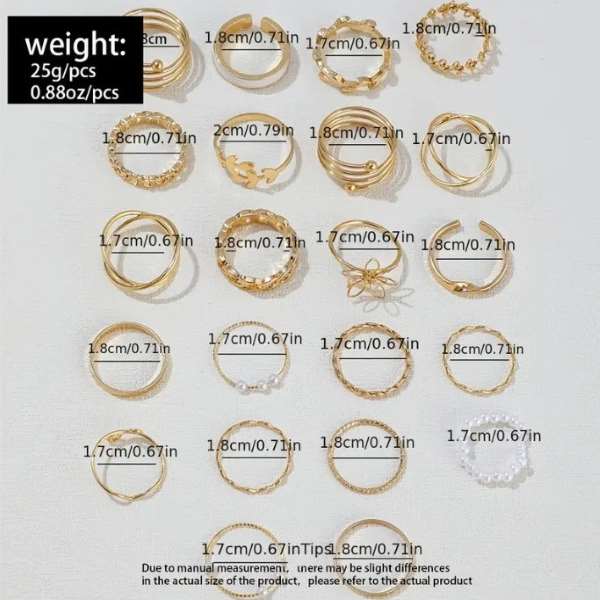 Deze set ringen is verkrijgbaar in goudkleur en is de perfecte aanvulling op je accessoirecollectie om gemakkelijk je unieke stijl uit te drukken. 💍✨