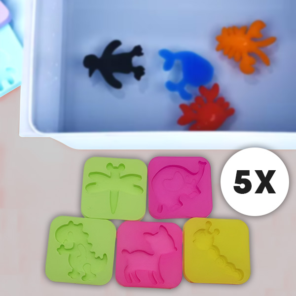 Meng calciumlactaat met water, laat de mal weken, vul met kleuren, ontvorm en stol.