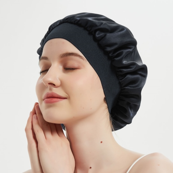 Onze muts heeft een ontwerp met brede randen, gemaakt van premium zijdezachte satijnen stof, wat ultiem comfort garandeert zonder in te boeten aan stijl. De brede band is ontworpen om uit te rekken voor een persoonlijke pasvorm en biedt luxueuze en veilige haarbescherming.